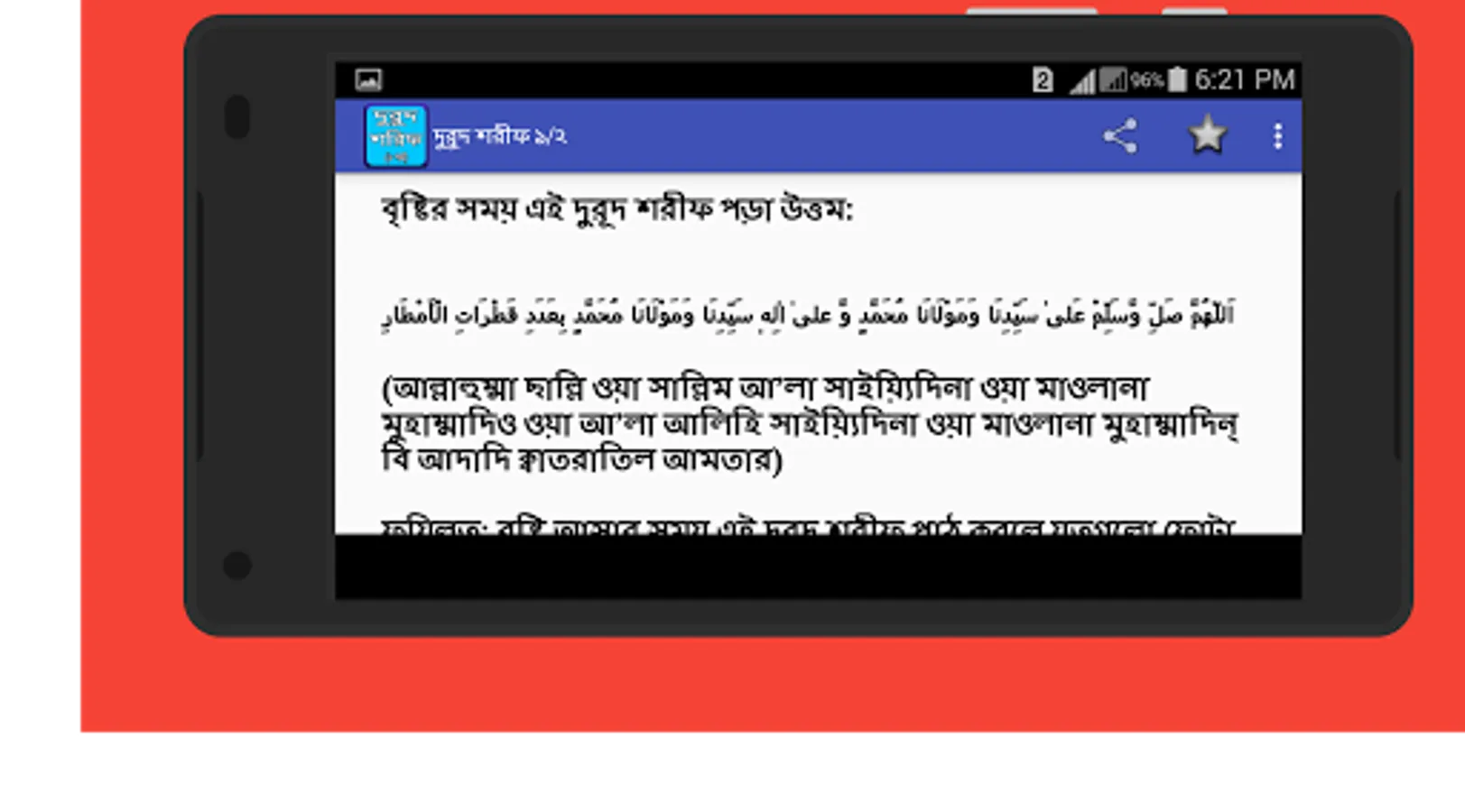 এ ছাড়া আর বিশেষ কিছু ফজিলত পূর্ন দোয়া দুরুদ আছে যা আমাদের অ্যাপ টিতে আছে বাংলা উচ্চারণ সহ এ ছাড়া জানতে পারবেন কখন কোন দিন কোন সময় দুরুদ পাঠ করতে হয় আর থাছে দুরুদ এর উপর ৭ টি বাংলা হাদিস।