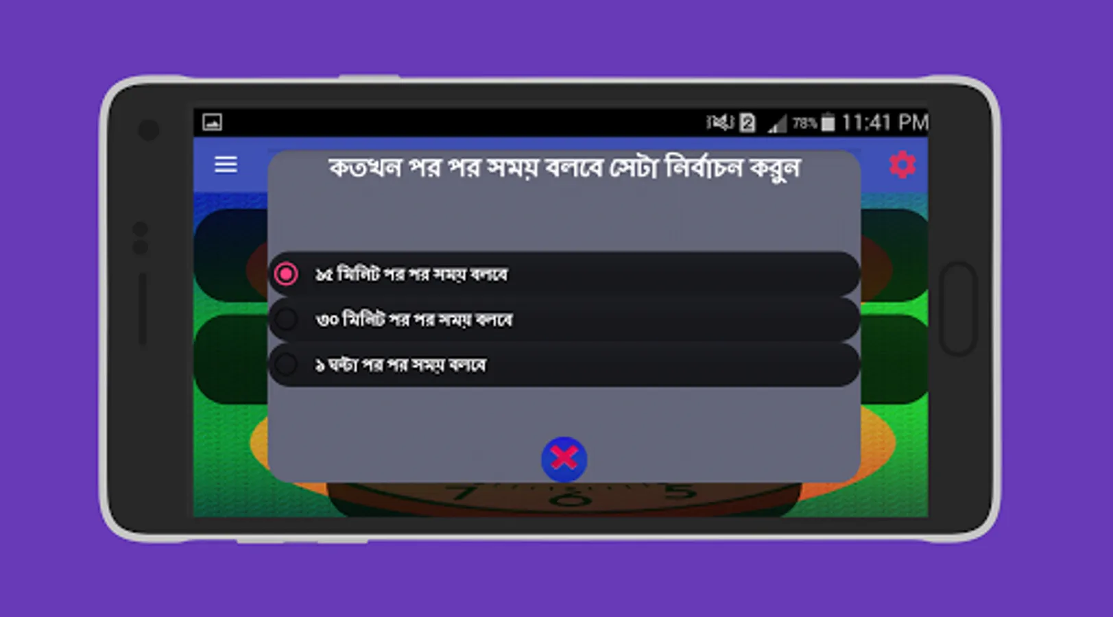 কথা বলা ঘড়ি Kotha boloa Ghori অ্যাপ আপনাকে সময় বলে দিবে, talking clock অ্যাপটি সেটিংস একদম সহজ। অপনি সময় শুনতে পাবেন প্রতি ১৫ মিনিট / ৩০ মিনিট / ১ ঘন্টা পর পর যা আপনি সেটিংস থেকে সিলেক্ট করে দিতে পারবেন।