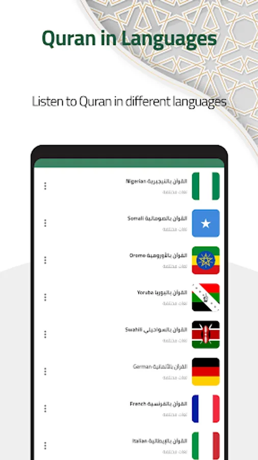AVAILABLE LANGUAGES FOR QURAN RECITATION