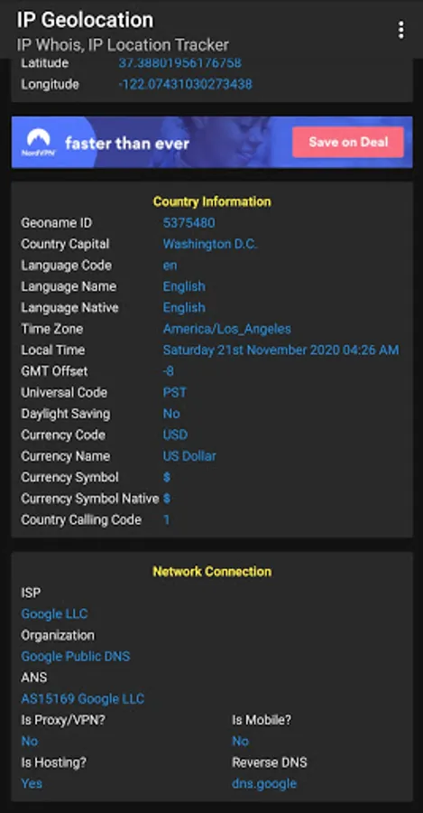 ✅ Precise details about the geolocation of IP (Region, state, city, GPS coordinates, latitude, longitude, etc.)