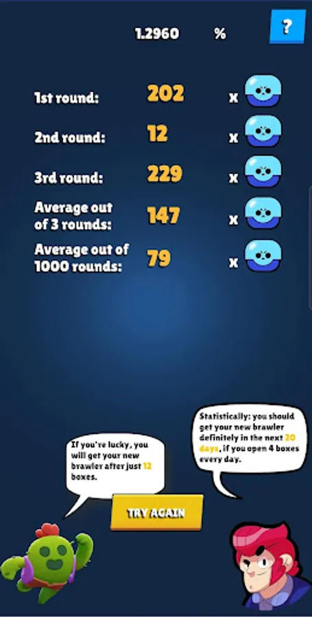 If you have asked yourself this question, then you are at the right place! With this app you can simulate the needed amount of boxes, until you get your new Brawl Stars Brawler!