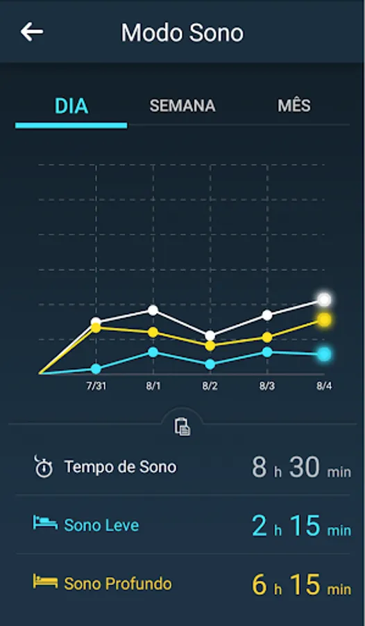 You can intuitively understand the daily walking steps, calories consumed, distance traveled data, as well as the amount of activity and the user's sleep status, classified daily, weekly and monthly by the app.