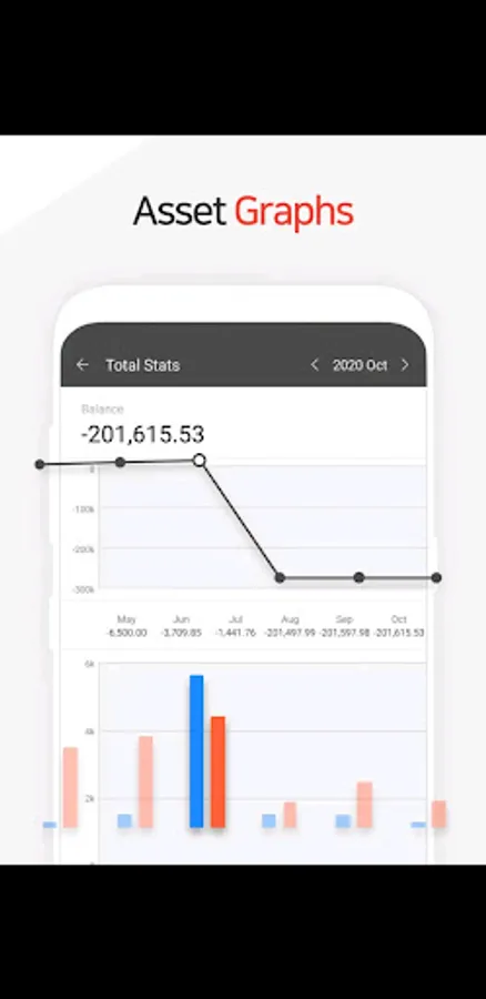 Quickly see the statistics of your transactions by category and the differences between each month with graphs.