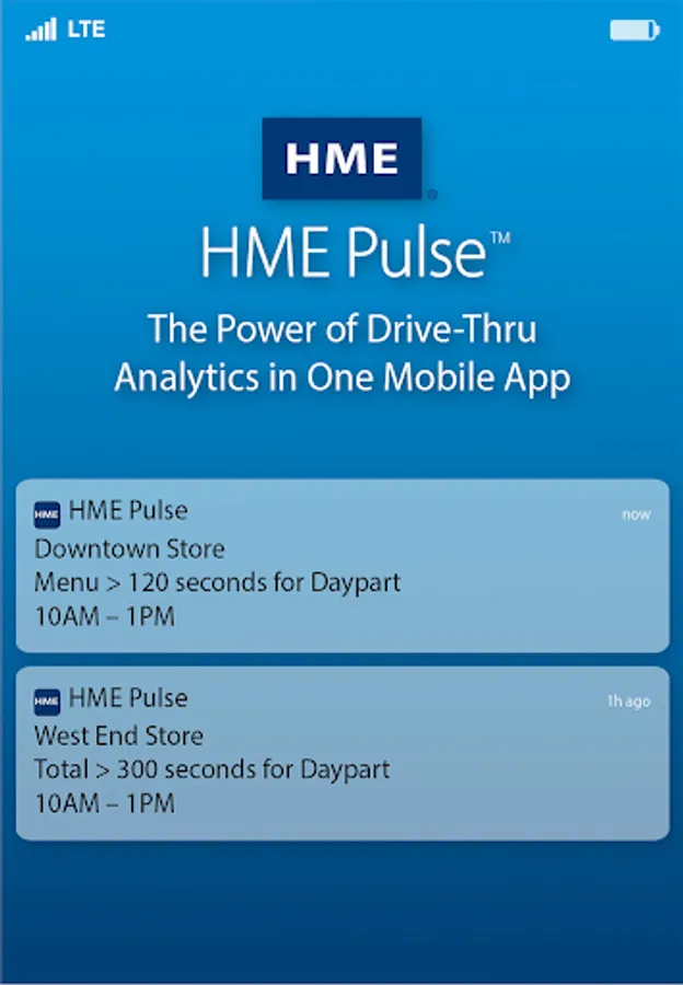 The all-new companion app to the HME CLOUD and the DTOS system makes it easier than ever to meet, and exceed, drive-thru performance goals by enabling you to set alerts and access real-time drive-thru metrics right from your phone.