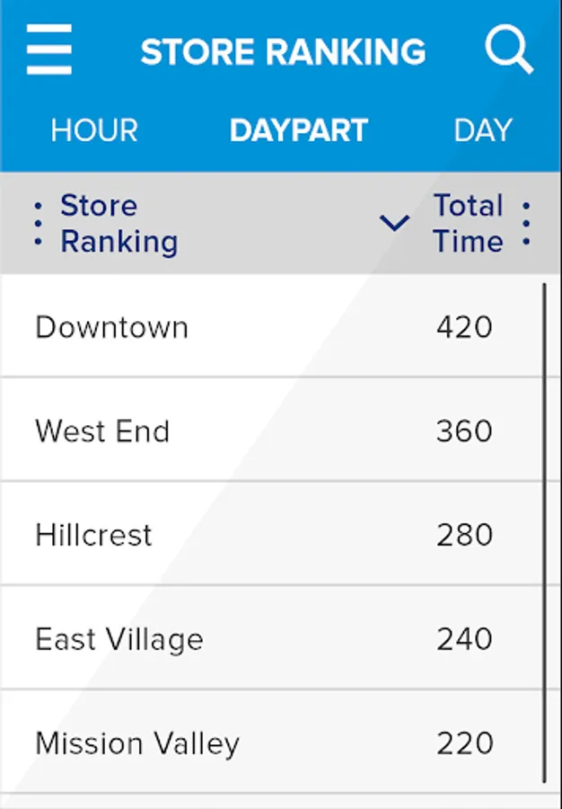 • Break down a store’s performance by hour, daypart, or day