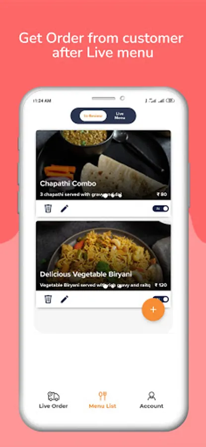 You can add Menu or our executive will help to add food menu. Menu contain some information like.. photo, name, Detail,Ingredients and availability timing.
