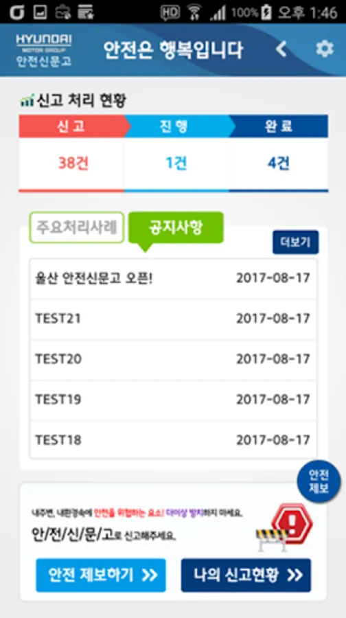 Tip Through the app, the safety concerns, if any, arising from each plant of Hyundai Motor Group, you can see the results