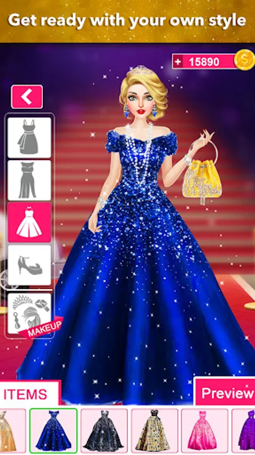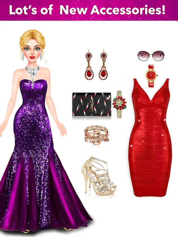 2022 red carpet night is all about glitz and glamour of beautiful elegant dresses, complete your dress-up look with some sparkly jewelry. Top your beauty model’s look by earrings, elegant tiaras and so much more of fashion makeover. This new style dress up game for girls offers so much excitement. So, start creating magical looks on your elegant super model in your fashion spa salon for girls dress up games.