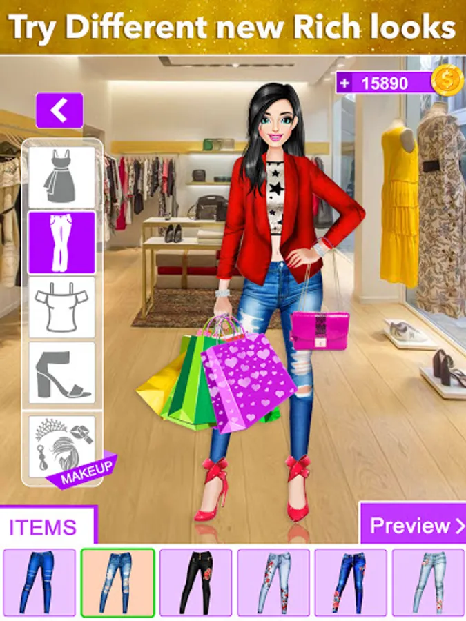 Let’s learn to express yourself as a professional designer of shopping mall girl fashion dress up and show other people your inner personality and uniqueness by making a stylish look of a rich girl with costly designs. These young girls pick the best fashion store to shop. In this shopping dress up girls game, a fashion girl dress up designer will enjoy trying various outfits with each glamorous rich girl from the wardrobe of luxury and stylish dresses.