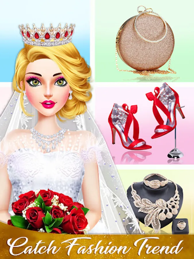 In these fashionable wedding dress games, you can choose from a wide variety of beautiful dresses, fancy hairstyles, jewelry, bouquet, headdress and dresses to make the ladies more charming. These girls fashion games also have many clothing accessories to decorate a perfect bridal wedding outfit in best trending wedding games.
