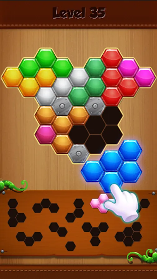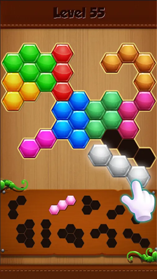 Your puzzle skills will be tested with this new angle on the classic dissection puzzle game! Our unique hexagonal pieces will expand your mind in ways you've never imagined before in this addictive puzzle game. Enjoy the satisfaction of pieces snapping neatly into place, filling the board with an array of color! With each block that fills in the gaps, your ability will grow - but so will the challenges!