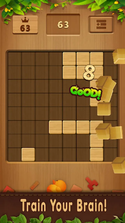 - Put the pieces on the board. Once a vertical or horizontal line is filled, it will disappear, making room for new pieces.