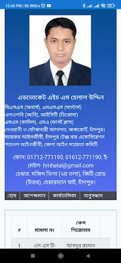 I am Advocate H M Helal Uddin, LLB (NU), LLM (DIU). Lawyer of Chandpur District Judge Court. I Practice Criminal, Civil, Family cases. Also practice as income tax lawyer. A Panel Lawyer of National Legal Aid Program in Chandpur District Commity. I also skilled ICT Law and Digital Security Law.