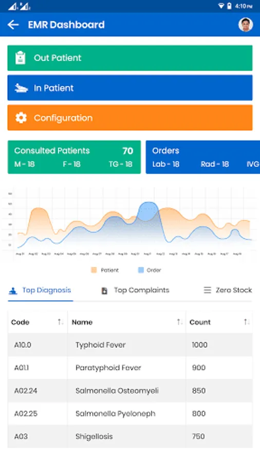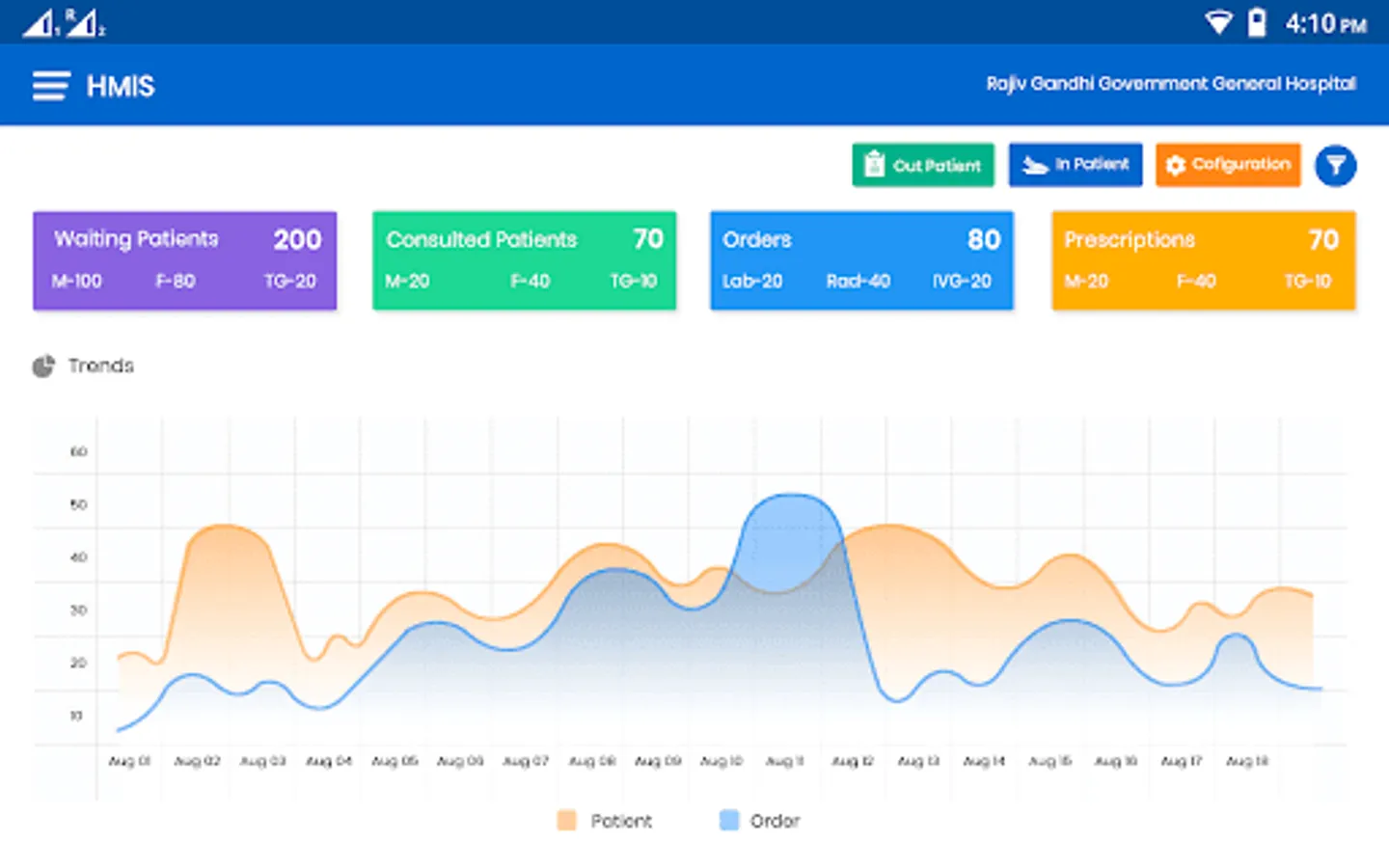 The doctor/ clinical practitioners capture complaints, Allergy, history, examination, diagnosis, prescription, diagnostics test etc., and the clinical notes / IP case sheet can be configured by a doctor based on the speciality. Also, Doctors can order any services or Medicines via CPOE. Doctors can do remote consultation using telemedicine along with clinical data.