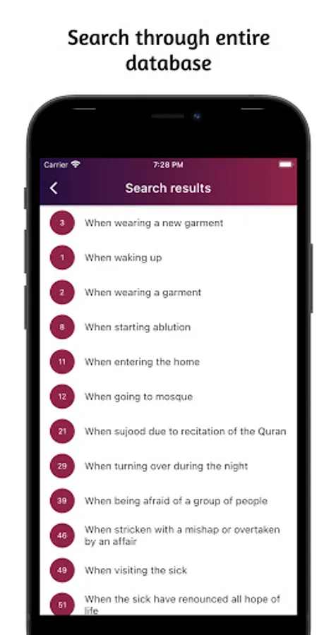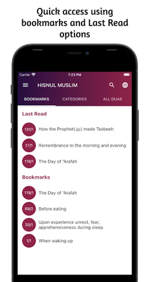 Some of the Dua's and Adhkar topics in the app - when waking up, when wearing and undressing, entering and leaving the toilet, performing ablution and prayer, going to the mosque, seeking guidance in making a decision, morning and evening Dua's & Adhkar, and a lot more.