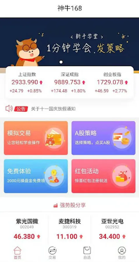 神牛168力求打造成为中国最安全的股票策略平台,通过与证券公司、银行合作,做到交易账户证券公司监管、账户资金银行托管。为广大股民提供安全、快捷、灵活的资金,是广大股民投资利器。