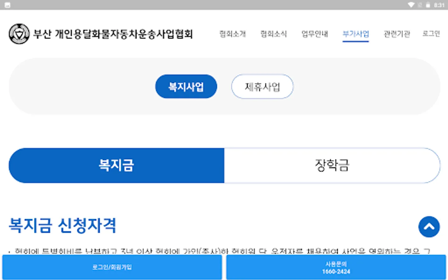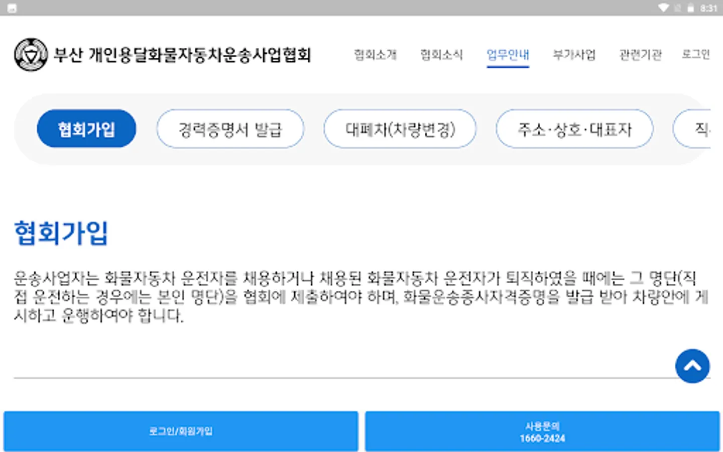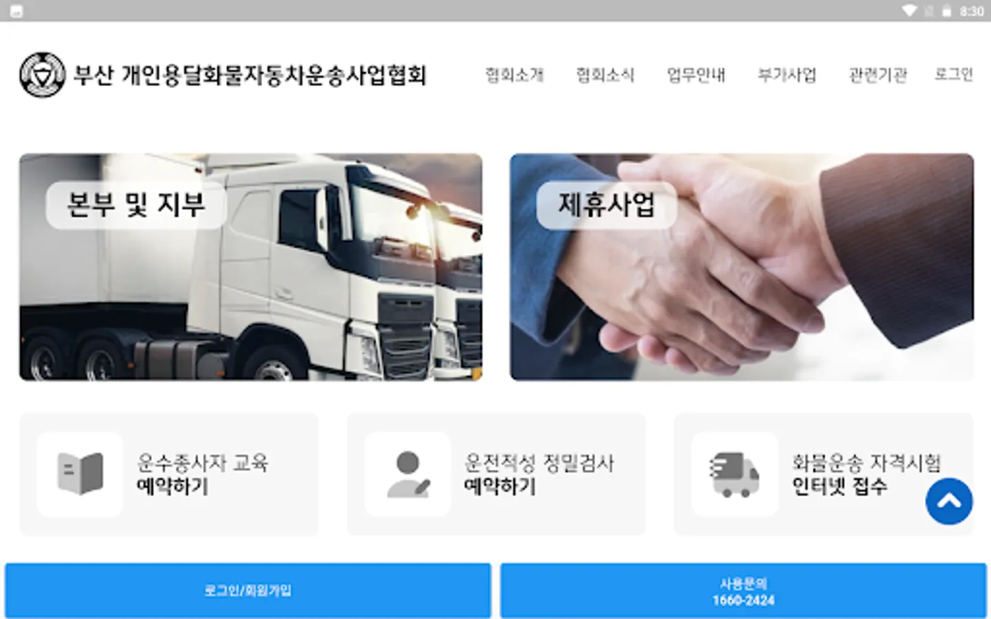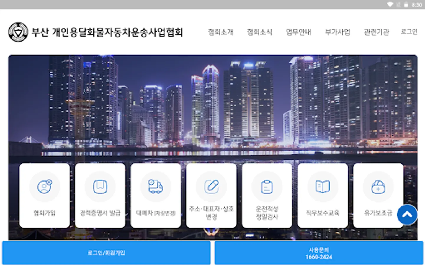 ■ The main services of the Busan Personal (Yongdal) Cargo Transport Business Association website have been implemented as an app so that they can be used on mobile.