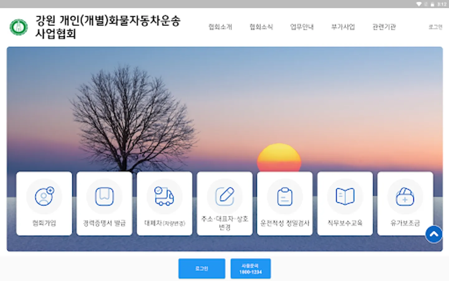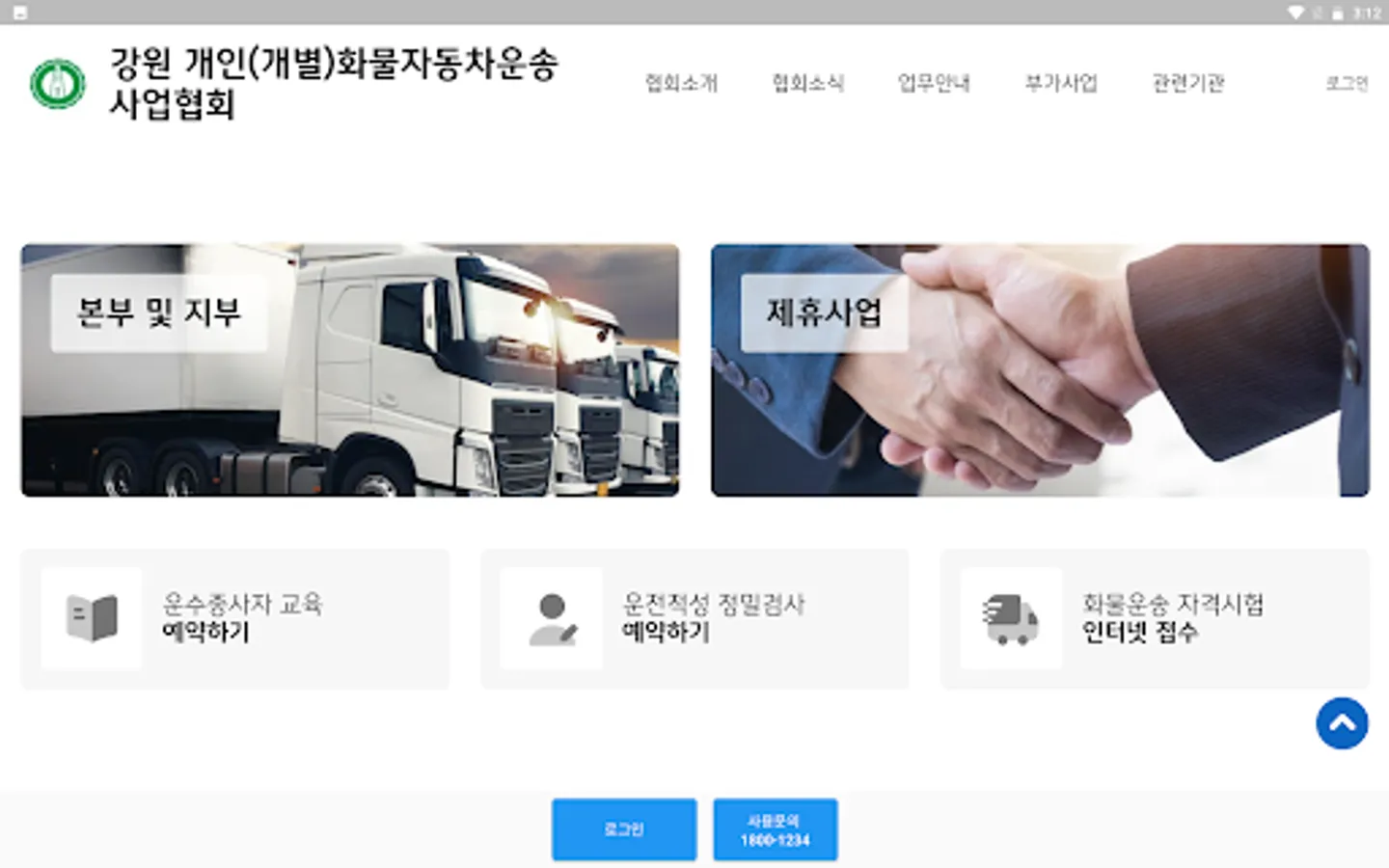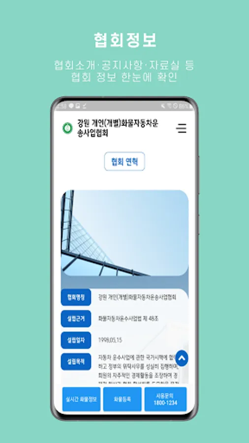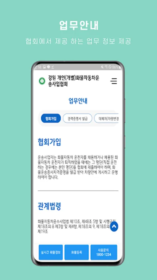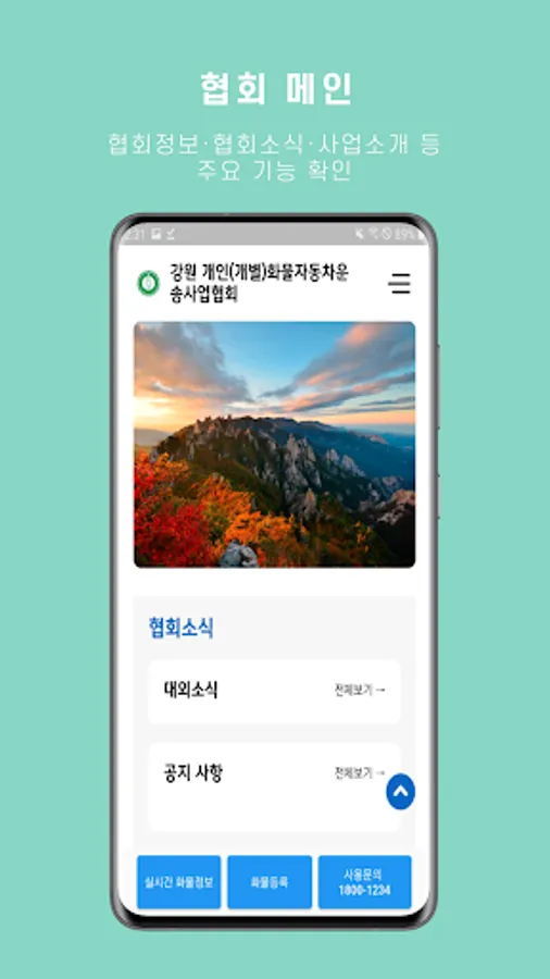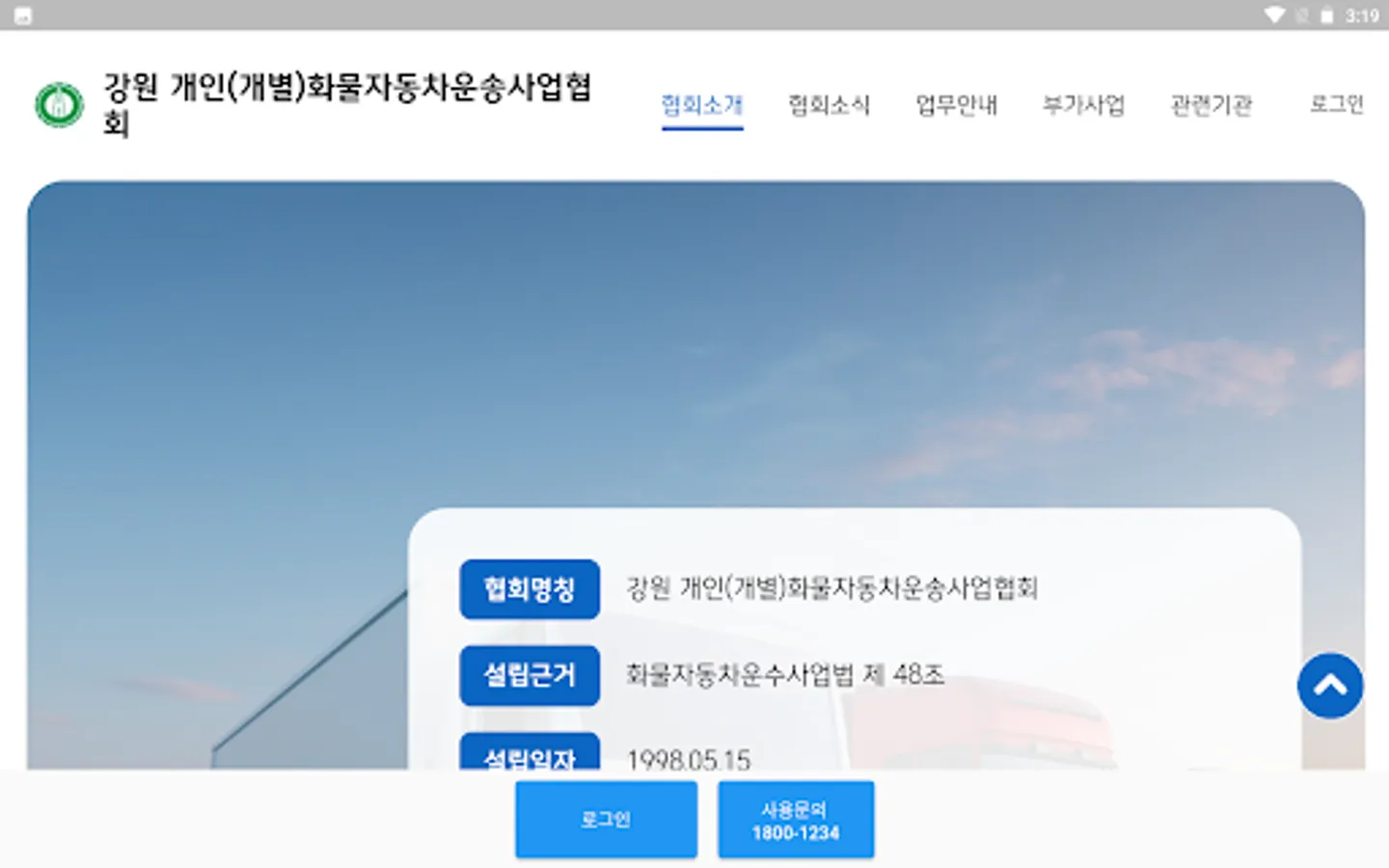 ■ The main services of Gangwon Individual (Individual) Cargo Transportation Business Association website have been implemented as an app so that they can be used on mobile.