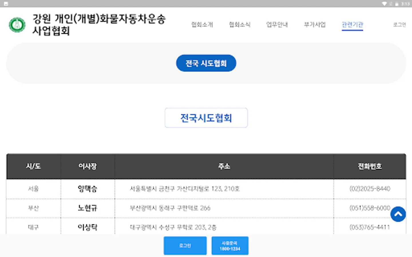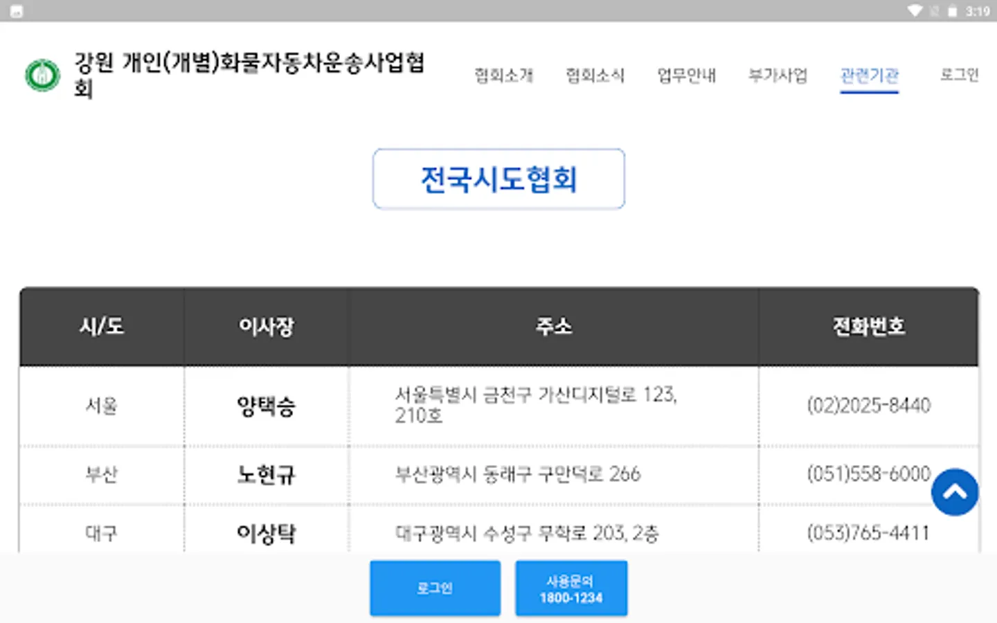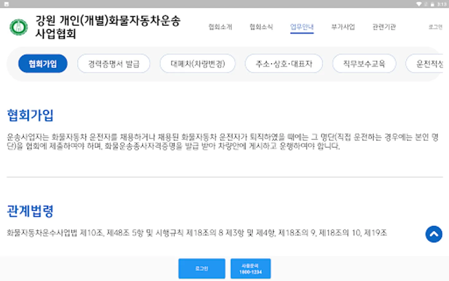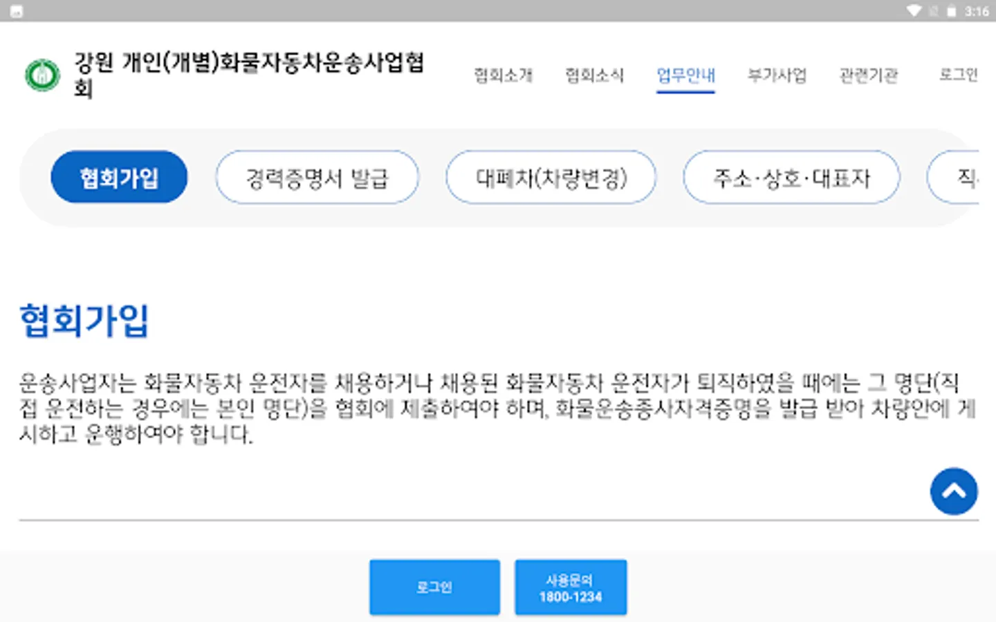 ■ The main services of Gangwon Individual (Individual) Cargo Transportation Business Association website have been implemented as an app so that they can be used on mobile.