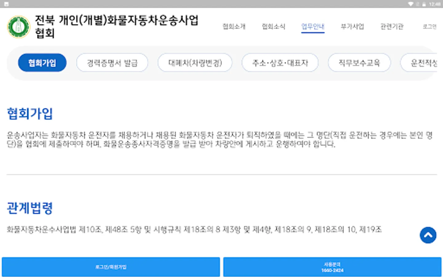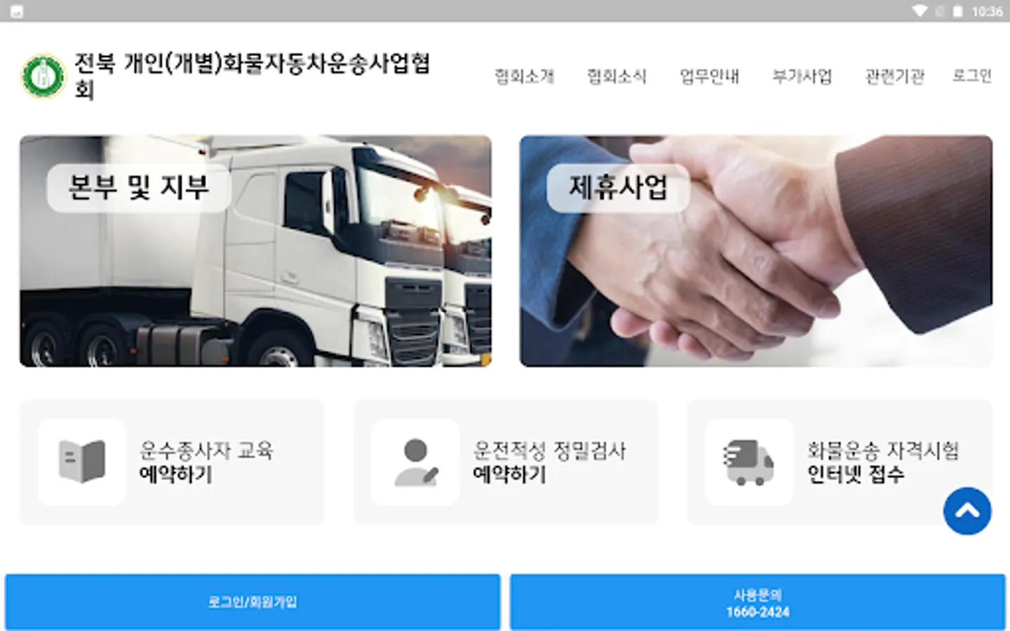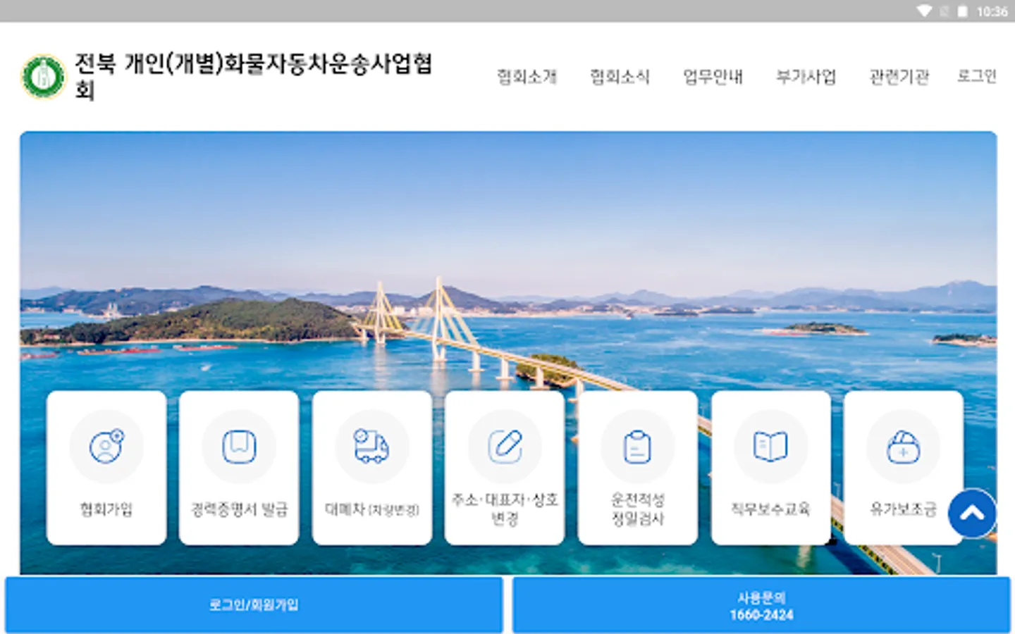 ■ The main services of the Jeonbuk Individual (Individual) Cargo Transportation Business Association website have been implemented as an app so that they can be used on mobile.
