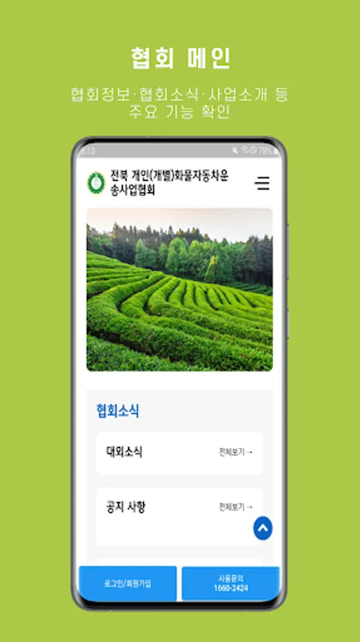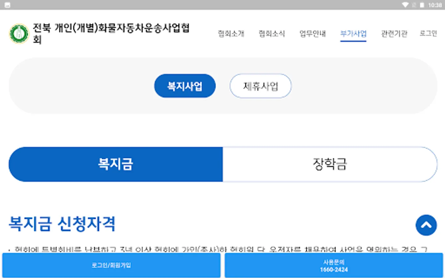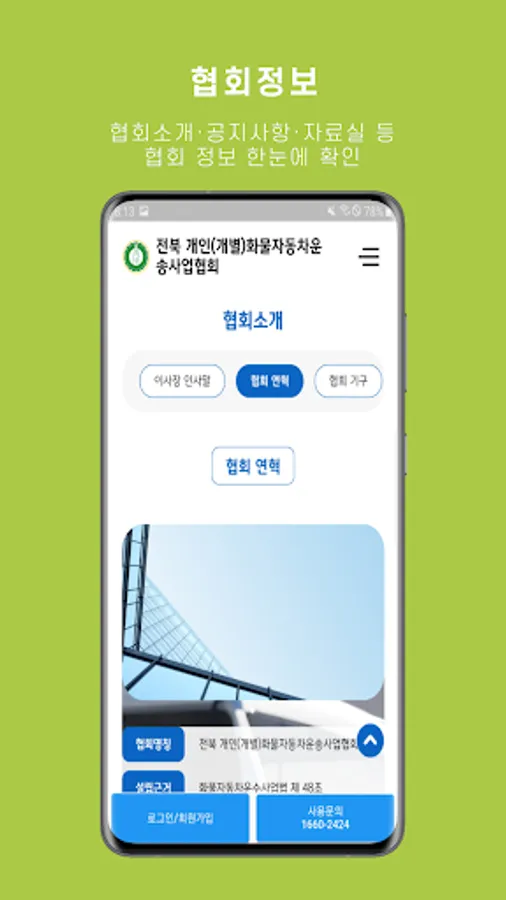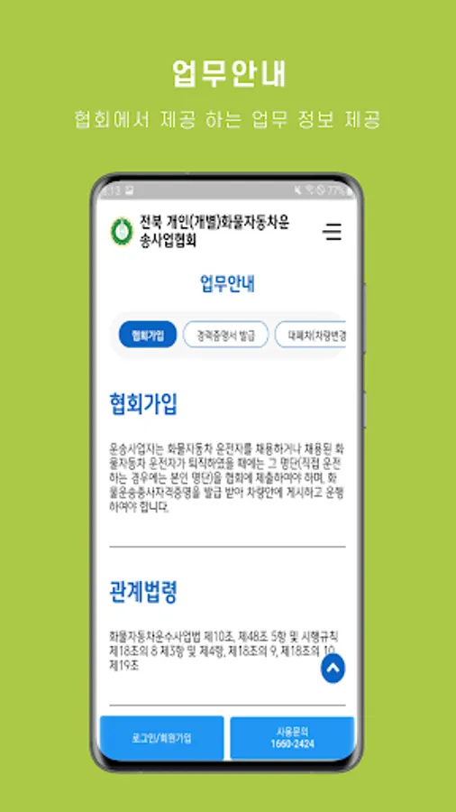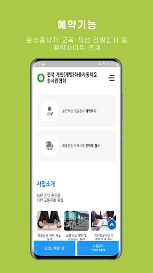 ■ The main services of the Jeonbuk Individual (Individual) Cargo Transportation Business Association website have been implemented as an app so that they can be used on mobile.