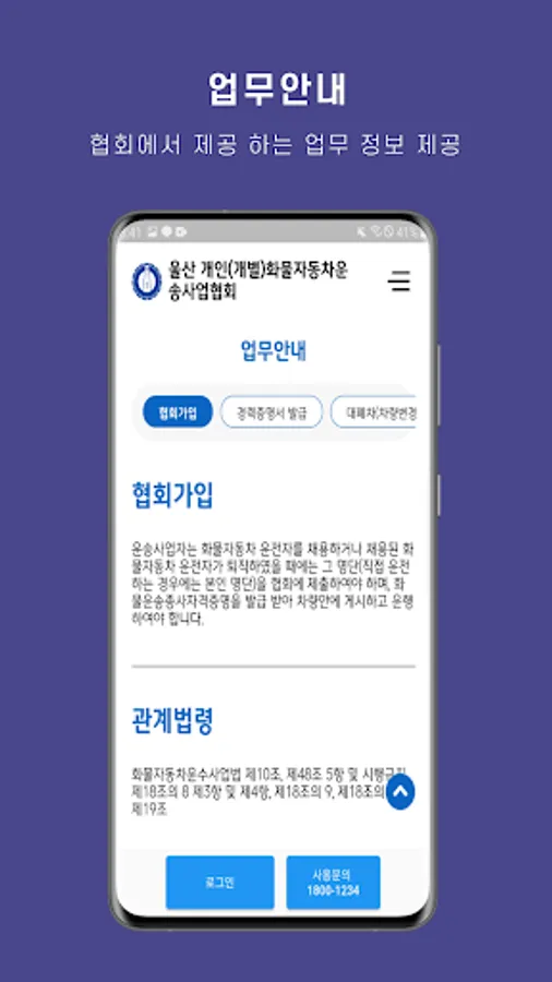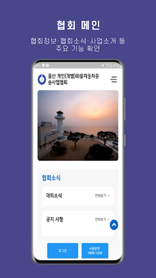 ■ The main services of the Ulsan Individual (Individual) Cargo Transportation Business Association website have been implemented as an app so that they can be used on mobile.