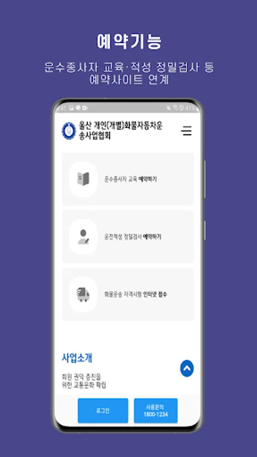 - Provides convenient functions such as transportation worker training guide, driver aptitude test reservation, etc.