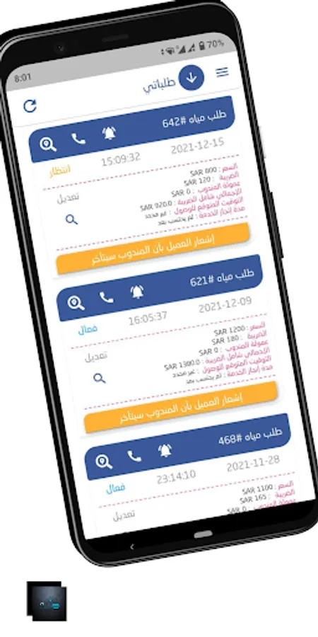 Second: The representative can specify the expected time of arrival to the customer or notify the customer that he will be delayed for a period of time to be determined through the application.