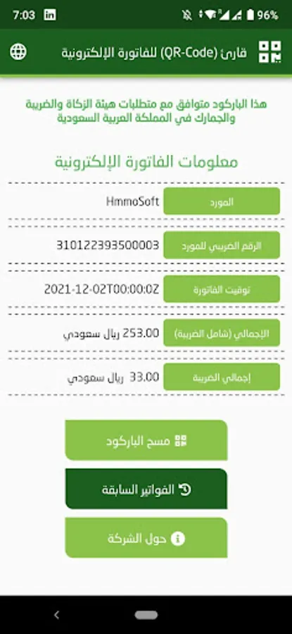 Through the application, you can check the compliance of the tax invoice with the requirements of the Zakat, Tax and Customs Authority in the Kingdom of Saudi Arabia