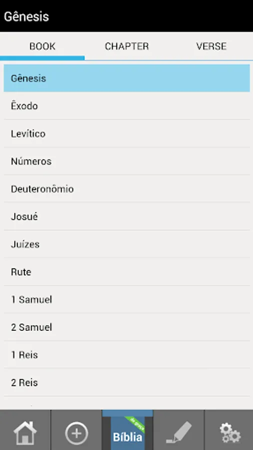 This app consists of all 66 books from the old and new testament, as follow in Portuguese: