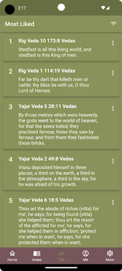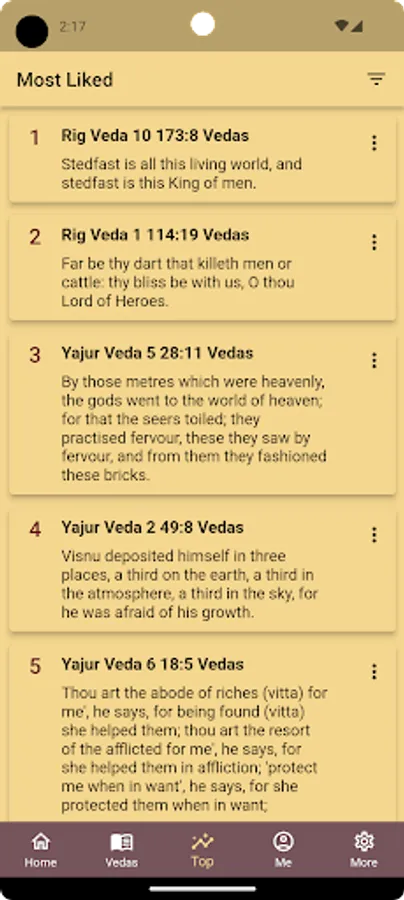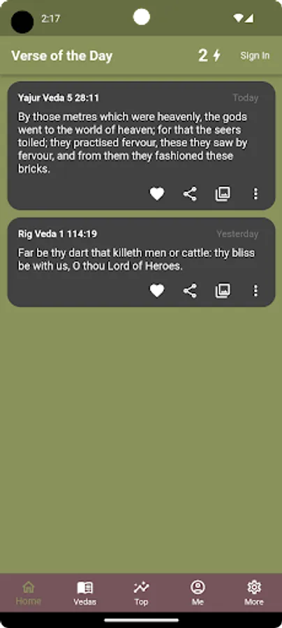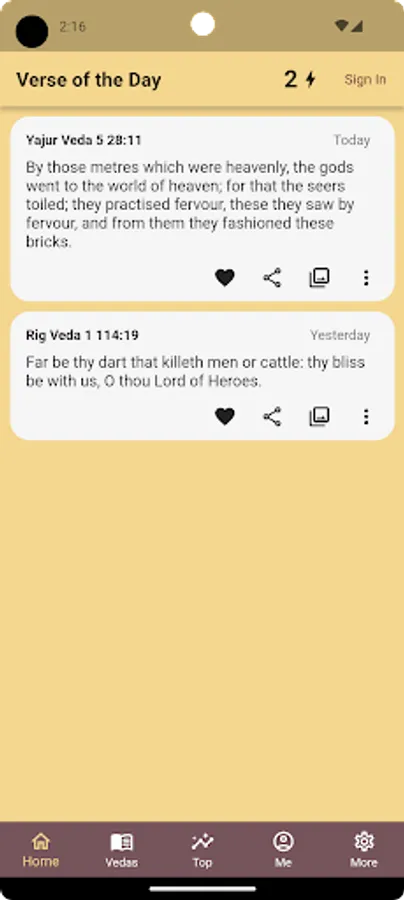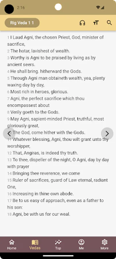When you open the app, you will see Vedas Verse of Day, and Vedas Book of the Day. Start your day with a Daily Vedas Verse or Browse the Book of Day.