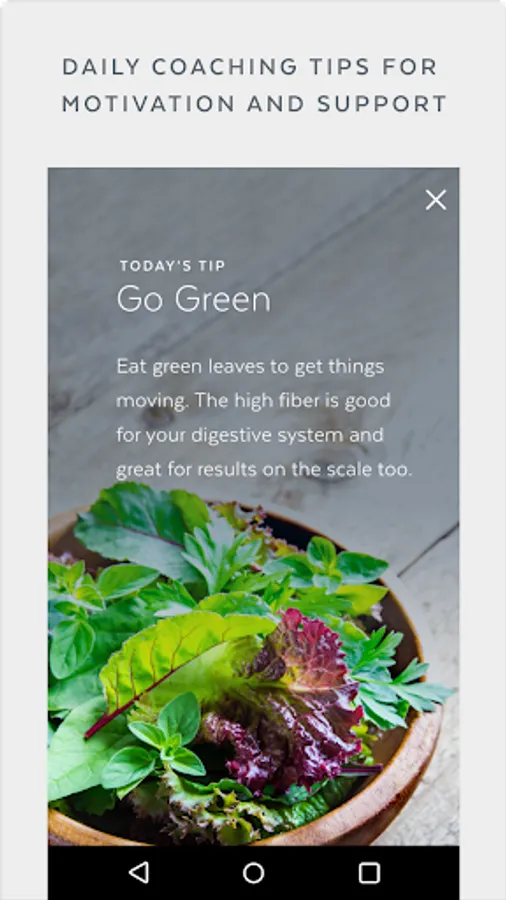 • Daily tips and content: Designed to provide support, inspiration and motivation, with access to program resources like articles, recipes and tips from other program members, as well as mini challenges, program messages and inspirational quotes.
