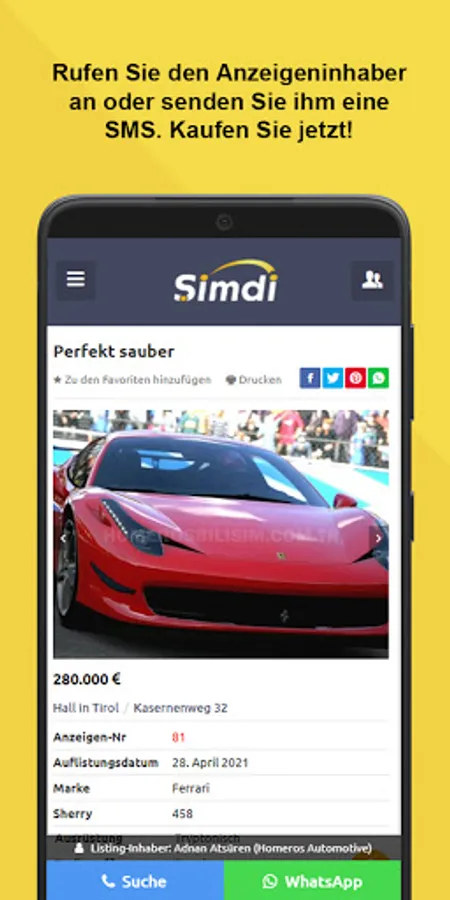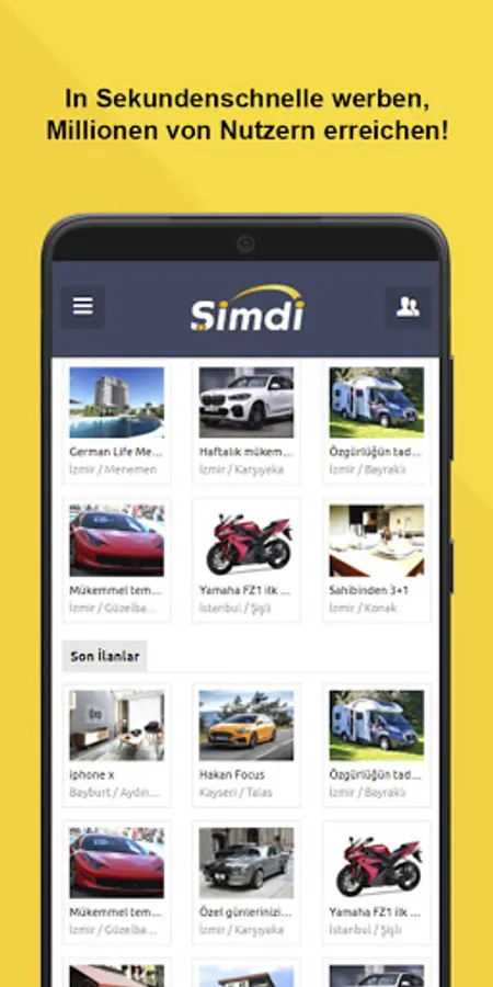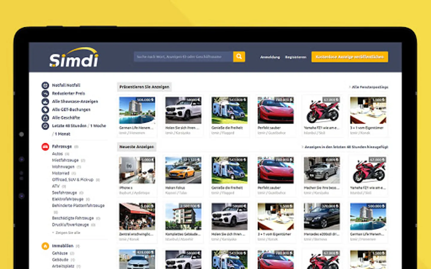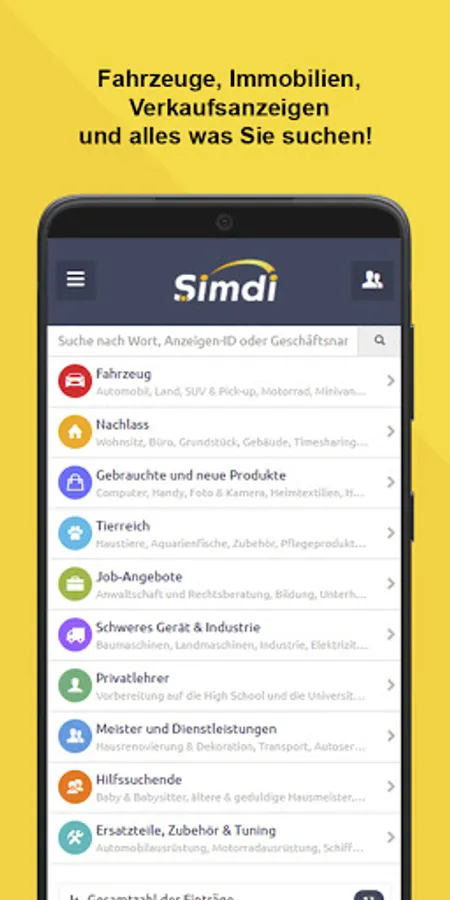 Simdi.at is an online shopping and advertising platform on which advertisements and e-commerce transactions are carried out in many categories, e.g. B. for the sale and rent of apartments, new and used cars, purchase products, job advertisements, craftsmen and services, construction machinery and spare parts.