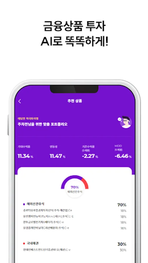 With the asset design and analysis engine that contains the know-how of Hyundai Motor Securities experts, you can easily set each target fund, investment function, customized news, as well as the portfolio and rebalancing timing selected by artificial intelligence, and share live investment information with your peers as if it were a game. There is a platform.