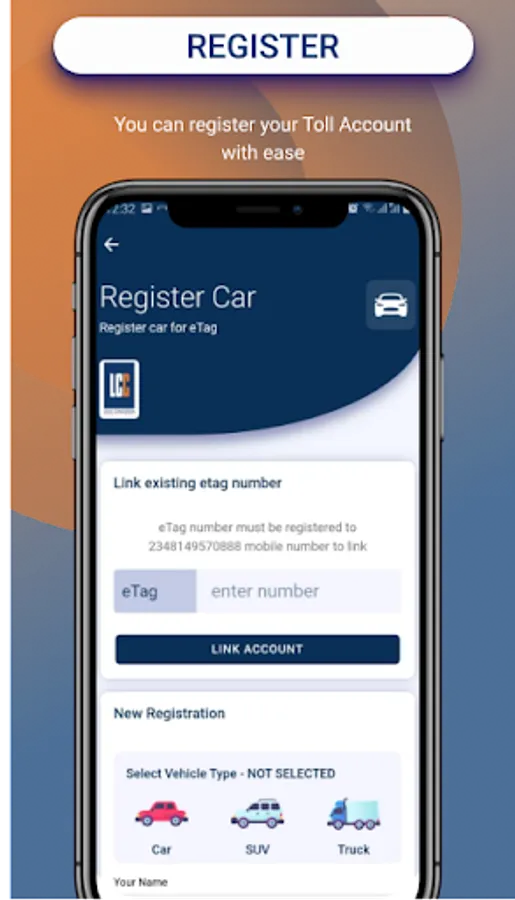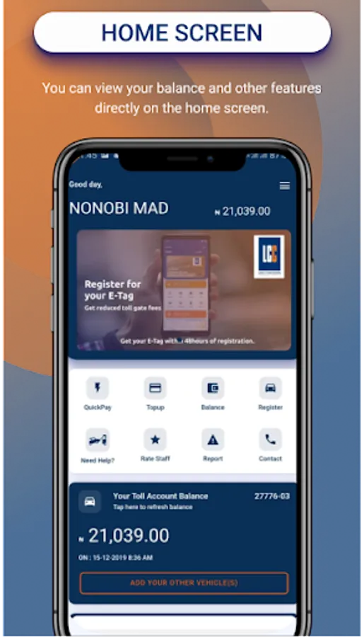 4. Register for Toll Account: Your registration of a new Toll Account is not just at your fingertips. Do you want to get a Toll account just register your profile, attach the necessary ID and Vehicle License image and you will be contacted once available in the App?