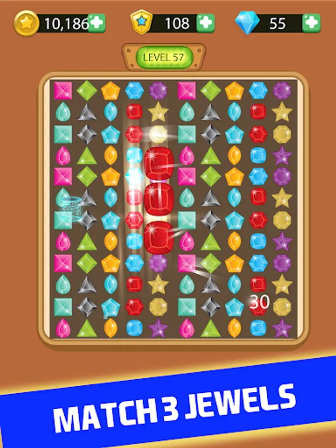 2: Match the jewels until the board transparency,the Jewels star will appear.