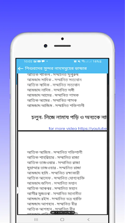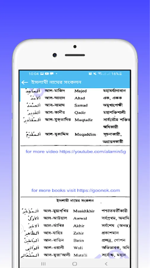 সম্মানিত পাঠক/পাঠিকা ভাই ও বোনেরা, এই app টিতে- রয়েছে মুসলিম শিশুদের অর্থ সহ- প্রায় ৪০০০ বাছাইকৃত নামের সমাহার । পরিস্কার ও ঝক ঝকে FDF ফাইল, এবং জুম করে পড়ার সুবিধা। আশা করে সবাই উপকৃত হবেন ইনশা আল্লাহ ৷ R সেই সাথে app টি ভাল লাগলে একটি রিভিউ দিয়ে, ও প্রিয়জনদের সাথে শেয়ার করে, দ্বীনিকাজে সহযোগিতা করার অনুরুদ রইল ৷