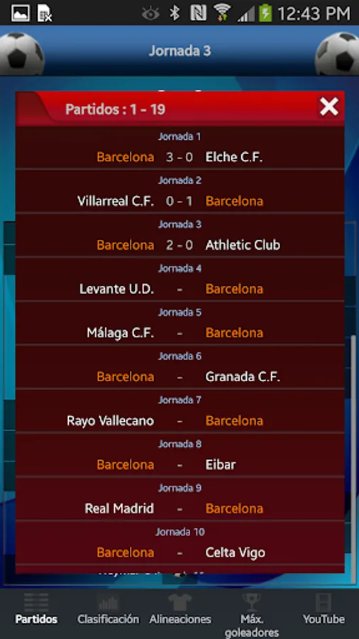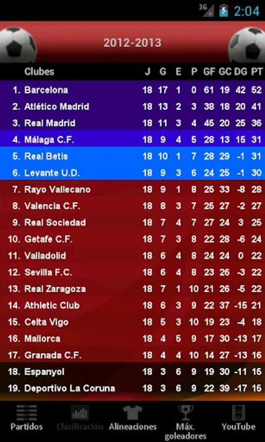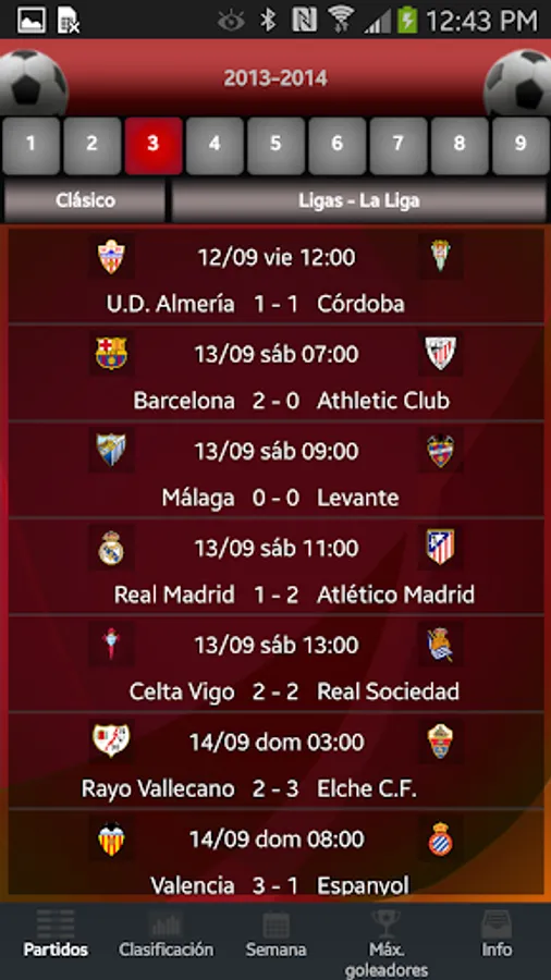 With Fútbol - La Liga you can reach the match results and the standings of La Liga easily.