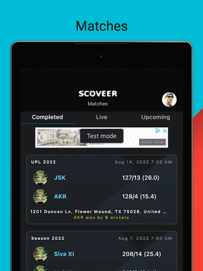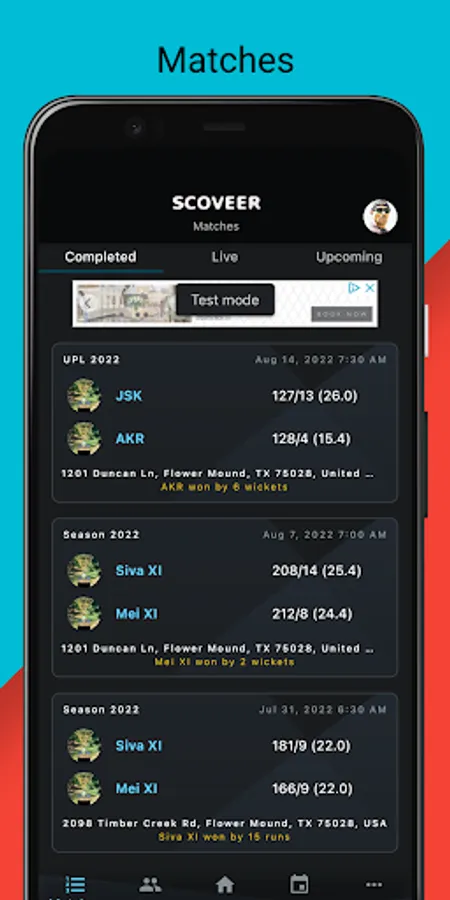It features, create and manage own teams, news, live scoring for own cricket matches, text commentary, full score boards, player stats and team rankings. Also team admin can create and manage events and seek voting from the players.