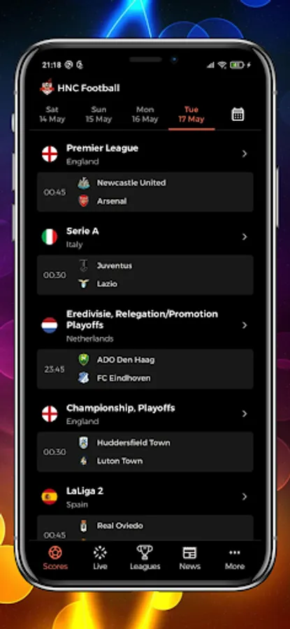 HNC Football mobile app includes everything you'd expect from Live Score on your smartphone, including live football scores.