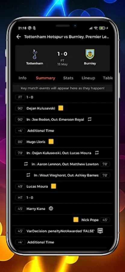 - Comprehensive match information