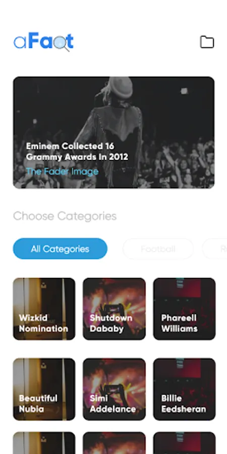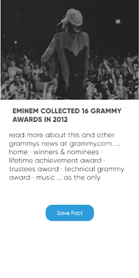 aFact is an entertainment information platform that help you keep tracks of Grammy winners yearly allowing you view playlist that won in certain years,also giving you the option of saving this information, you can view this information per categorises and see what's trending randomly