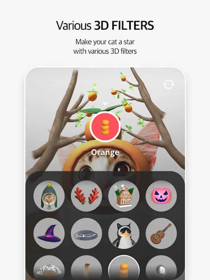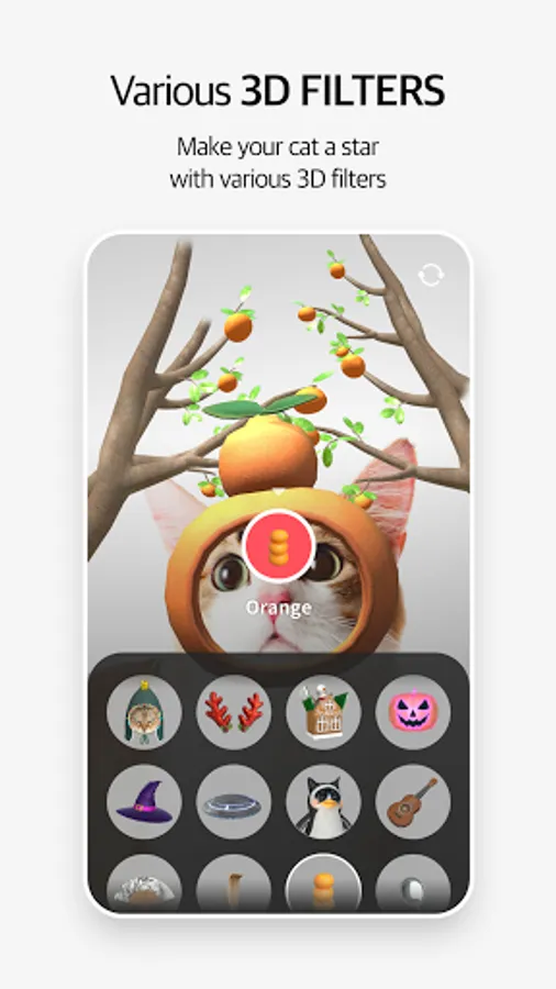 You can apply various and fun AR contents to the cat's face shot in real time.