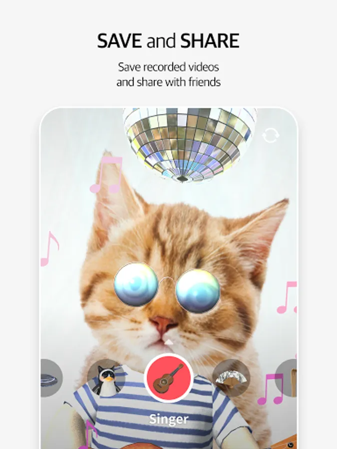 Choose a filter that lets you see different cats, such as a cat playing guitar, a working cat, a delivery cat, and a UFO cat. Depending on the filter, the animation will change, so you can take a more interesting picture.