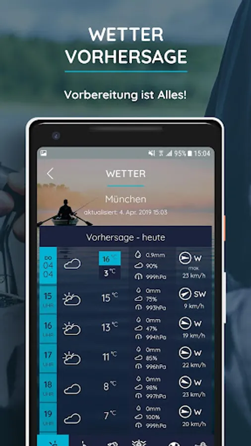 Angelwetter liefert Dir als zuverlässiger Angelbegleiter im Hosentaschenformat täglich alle wichtigen Daten für Deine Angelplanung.