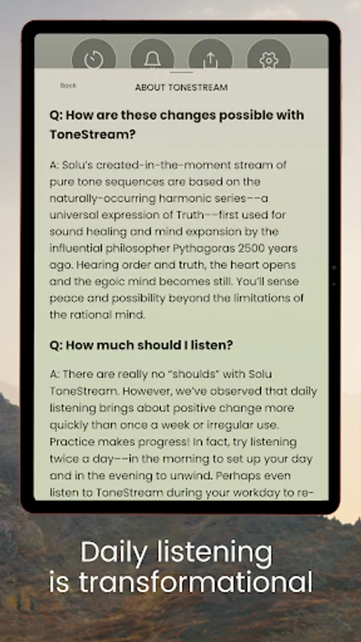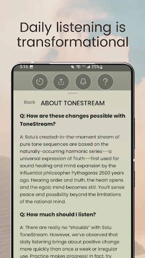 PEACE | Solu ToneStream uses pure, peaceful tones based on the naturally-occurring harmonic series––used for sound healing and mind expansion since the time of influential philosopher Pythagoras 2,500 years ago.
