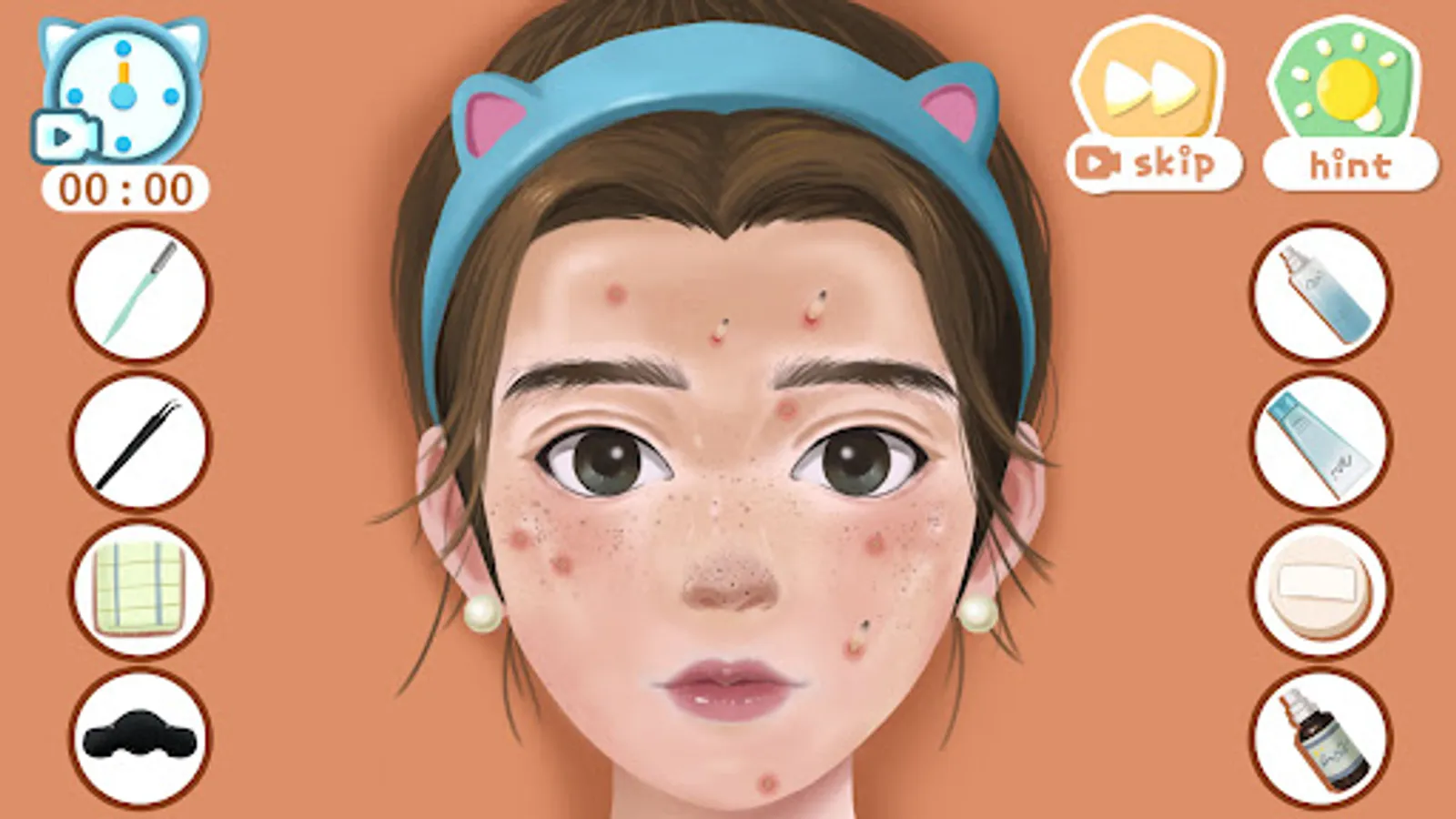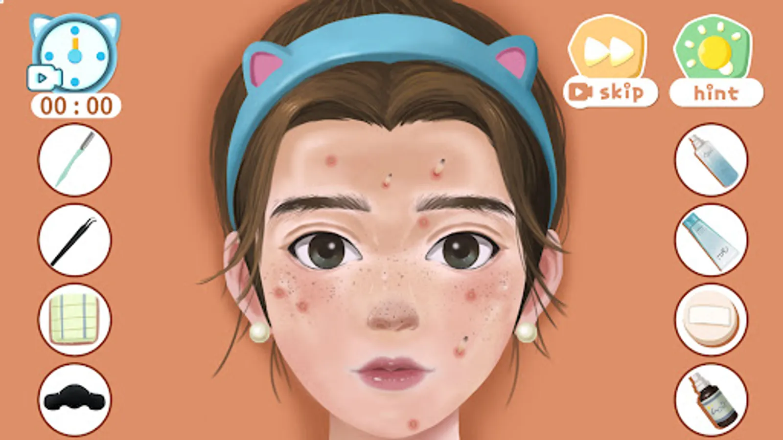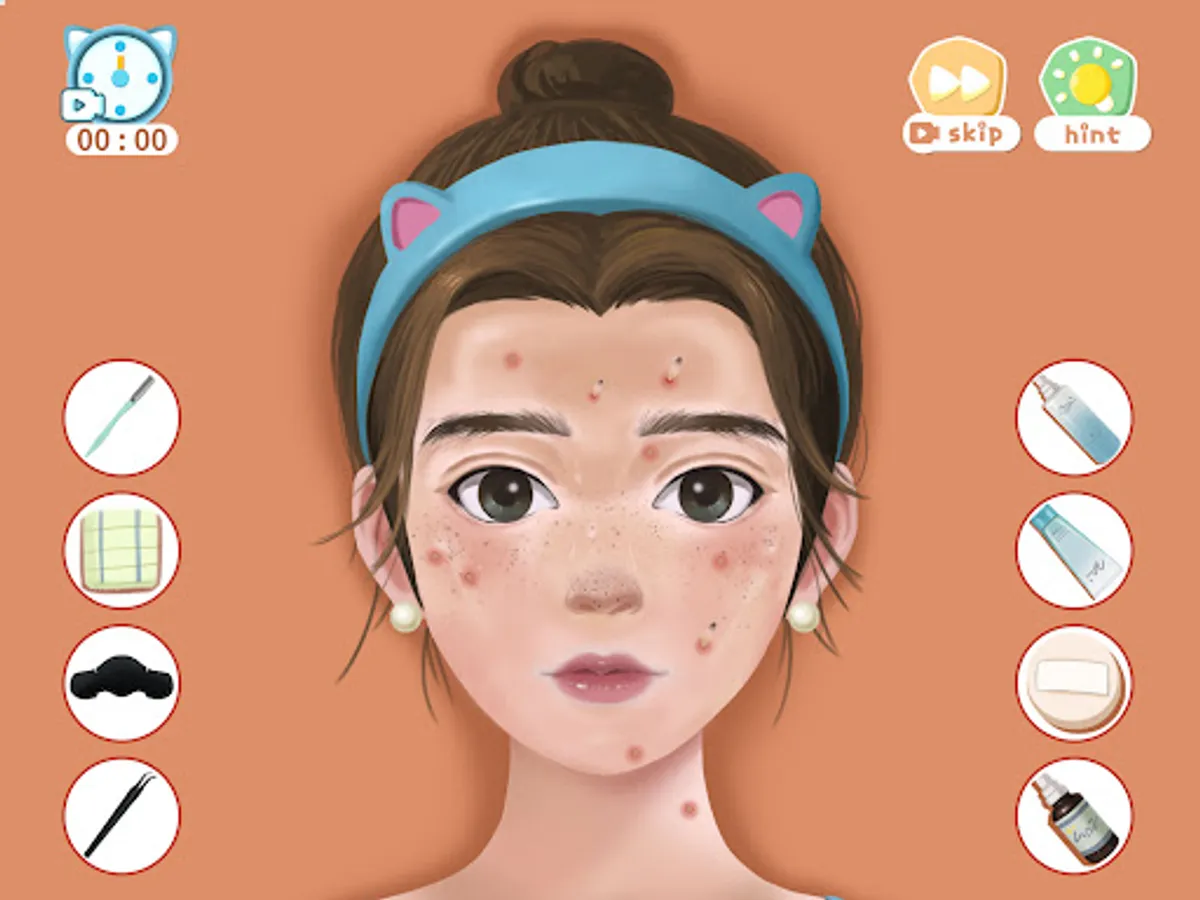 The characters in the game have different skin problems and makeup needs, such as oily skin, blackheads, pimples, and more. Players need to choose the right tools, such as cleansing masks, blackhead removers, makeup brushes, etc., to clean and apply makeup on the characters according to their needs. At the same time, players need to pay attention to time and the order of operations to complete the cleaning and makeup tasks within the specified time.