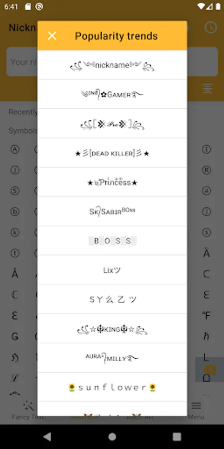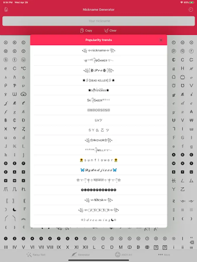 ㋡ Creating a striking nickname with your own style and personality for games or social network accounts has never been so easy that you can make it right on your phone.