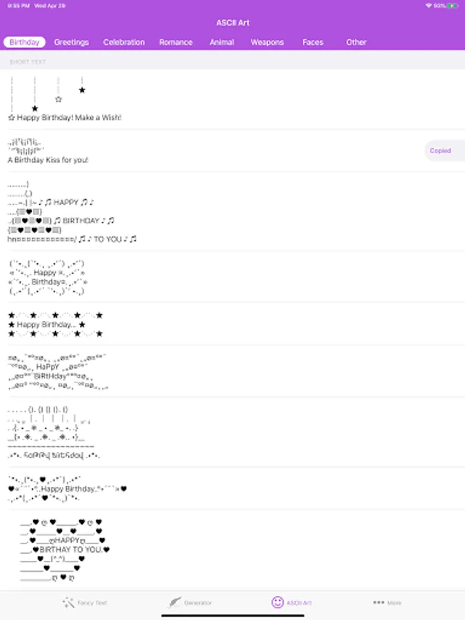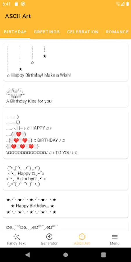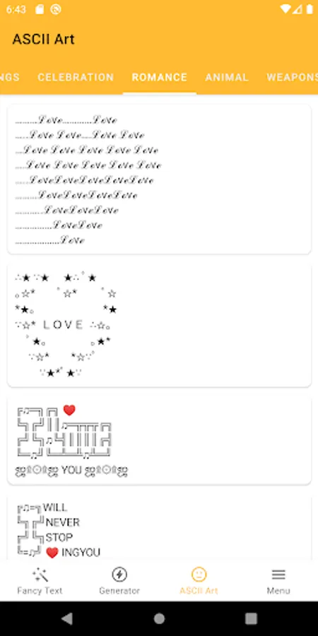 ๏ More than 300 custom-made text art ready for you to send your message to the recipient.