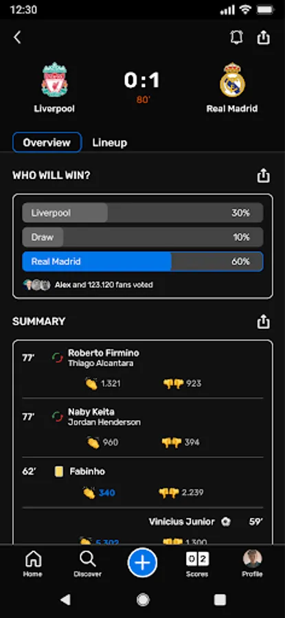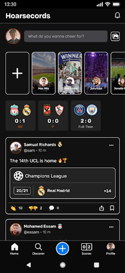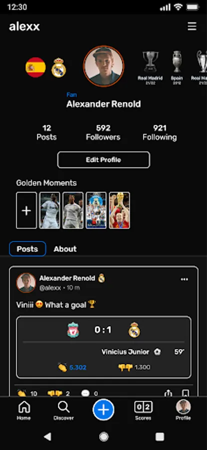 Describe yourself through the sports and teams you love, post and display your unforgettable moments, have a live score you can react to and share.